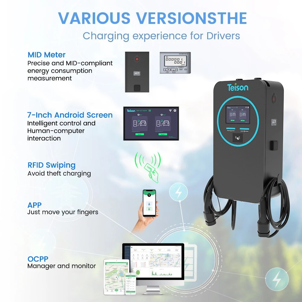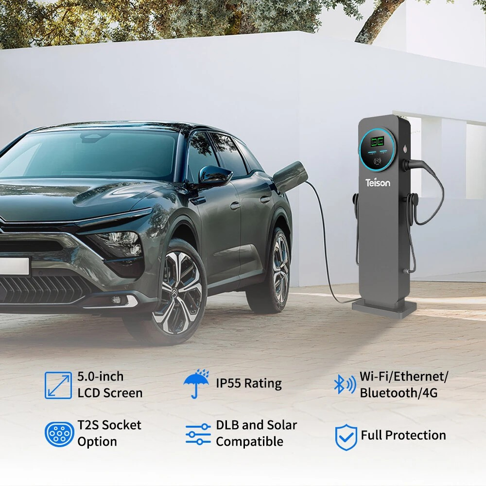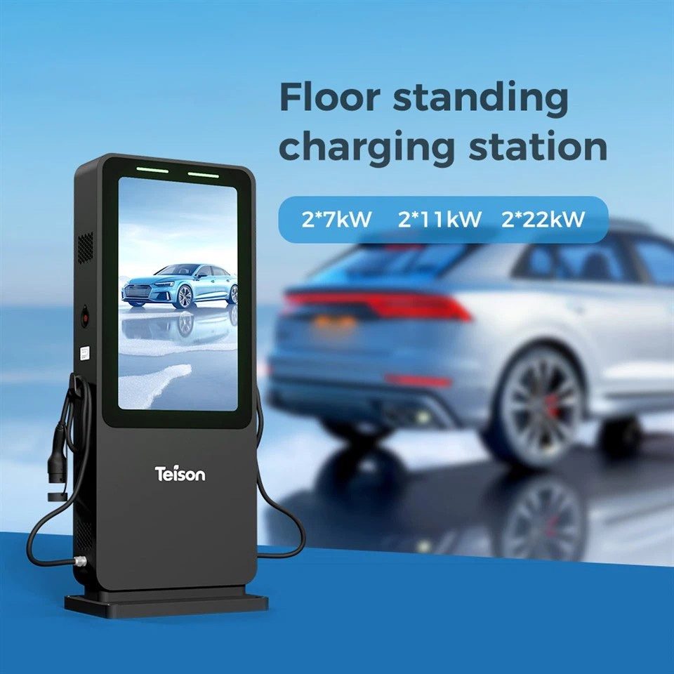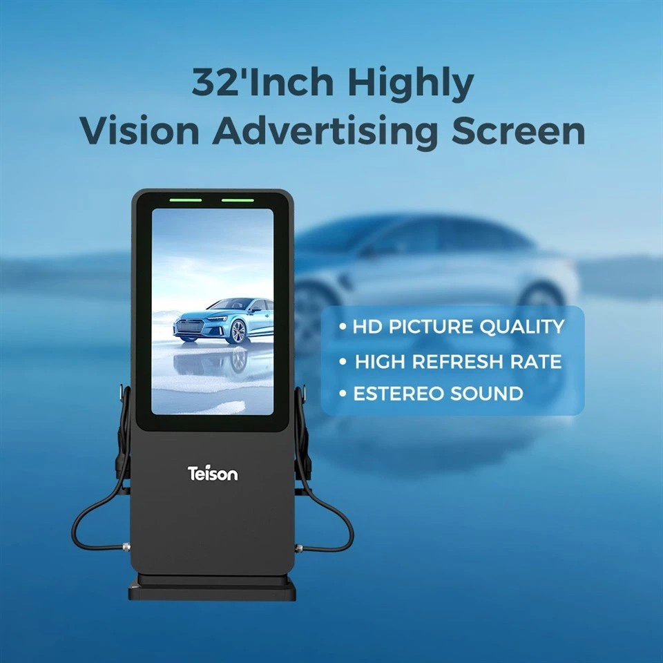 เครื่องชาร์จแบตเตอรี่รถยนต์ไฟฟ้าแบบตั้งพื้นมีจอแสดงผลขนาดใหญ่ 32" EV Charger Teison Pro Smart Twin 2x11kW และ 2x22kW Type 2