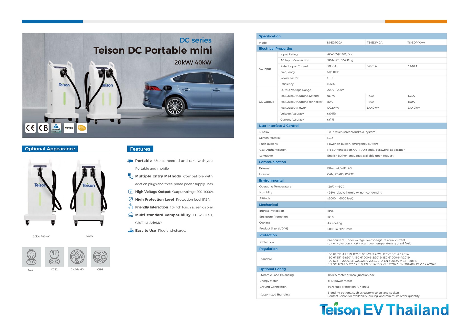 เครื่องชาร์จแบตเตอรี่รถยนต์ไฟฟ้าแบบเคลื่อนย้ายได้ กระแสตรง EV Charger Teison DC Mobile Fast Charger